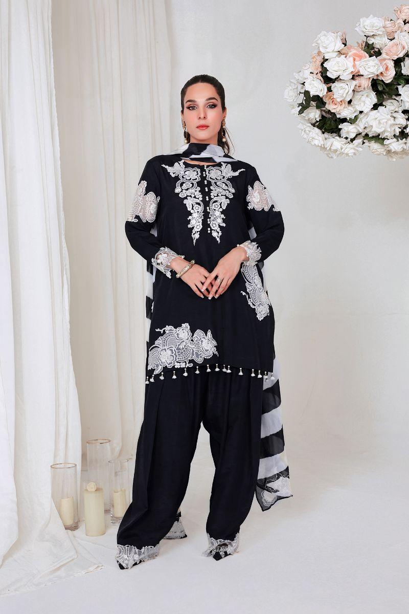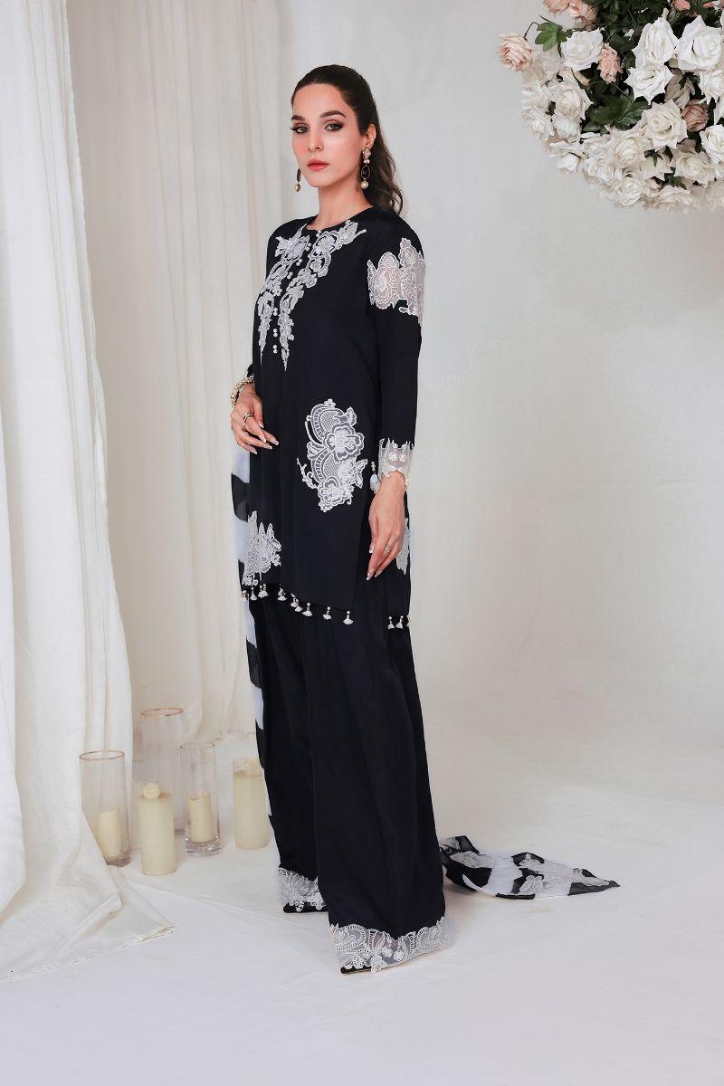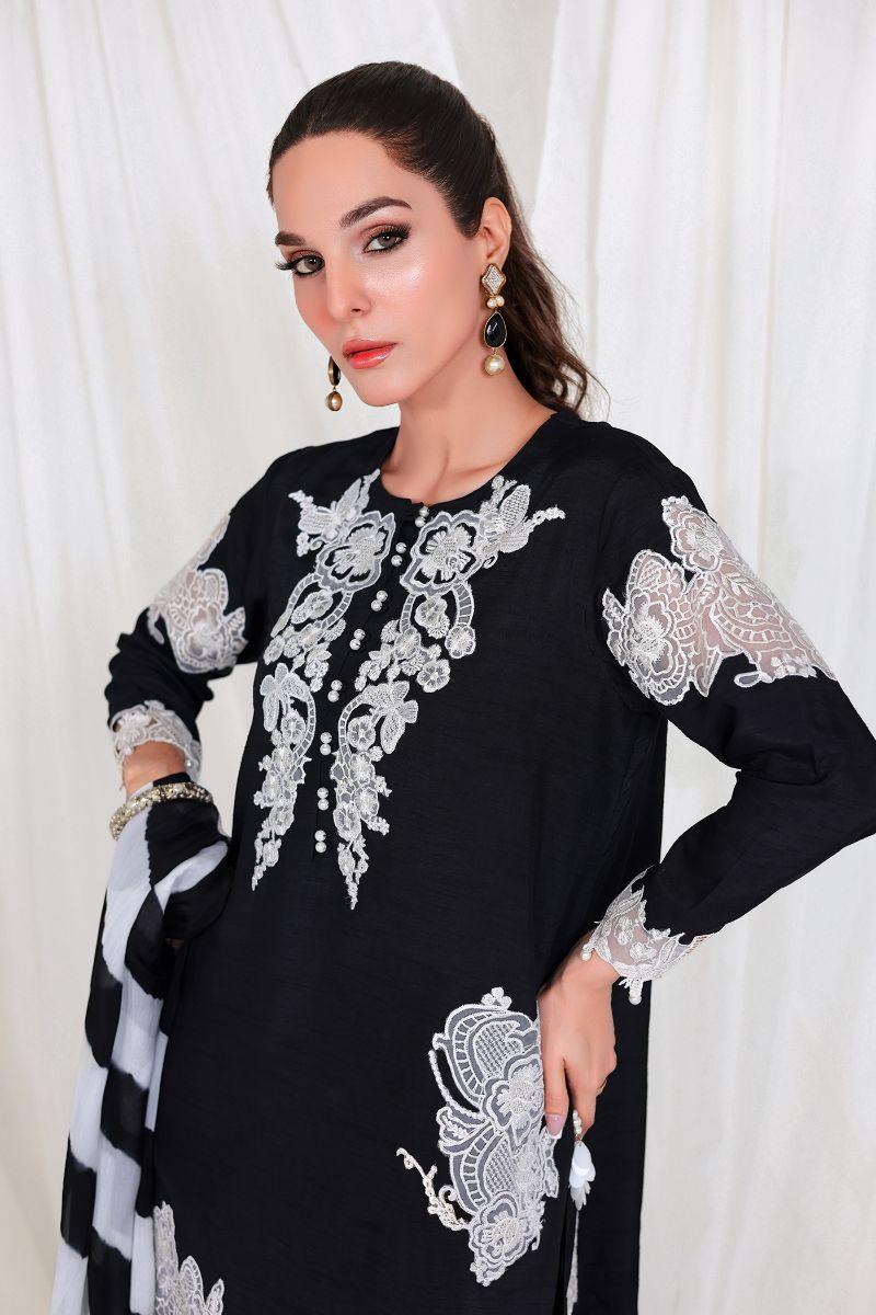 Reema Ahsan - HOORIYA - Korean raw silk - Black - 3 Piece