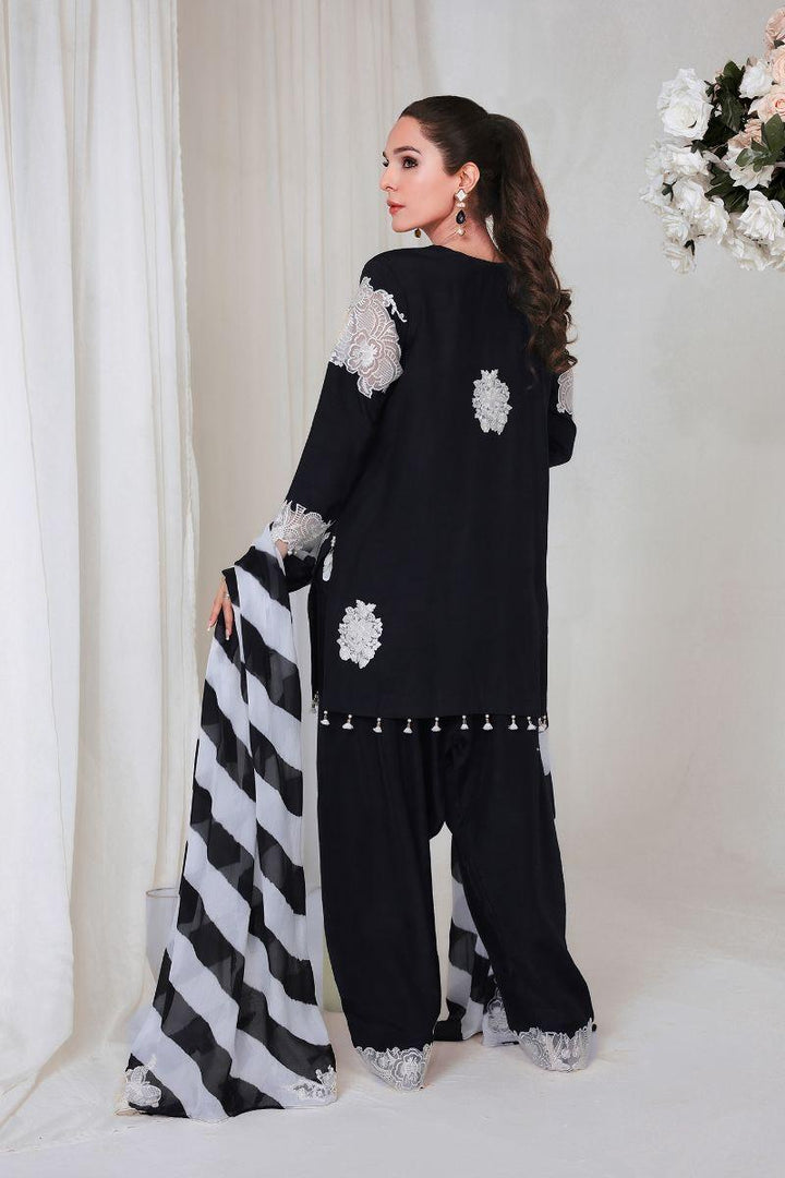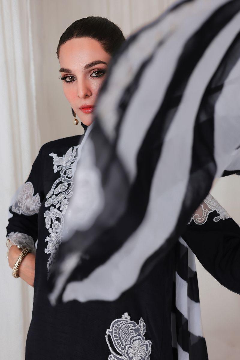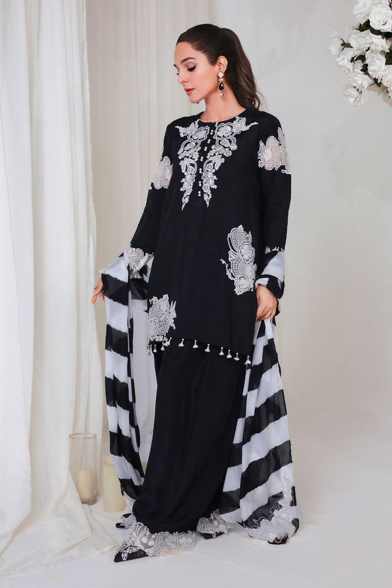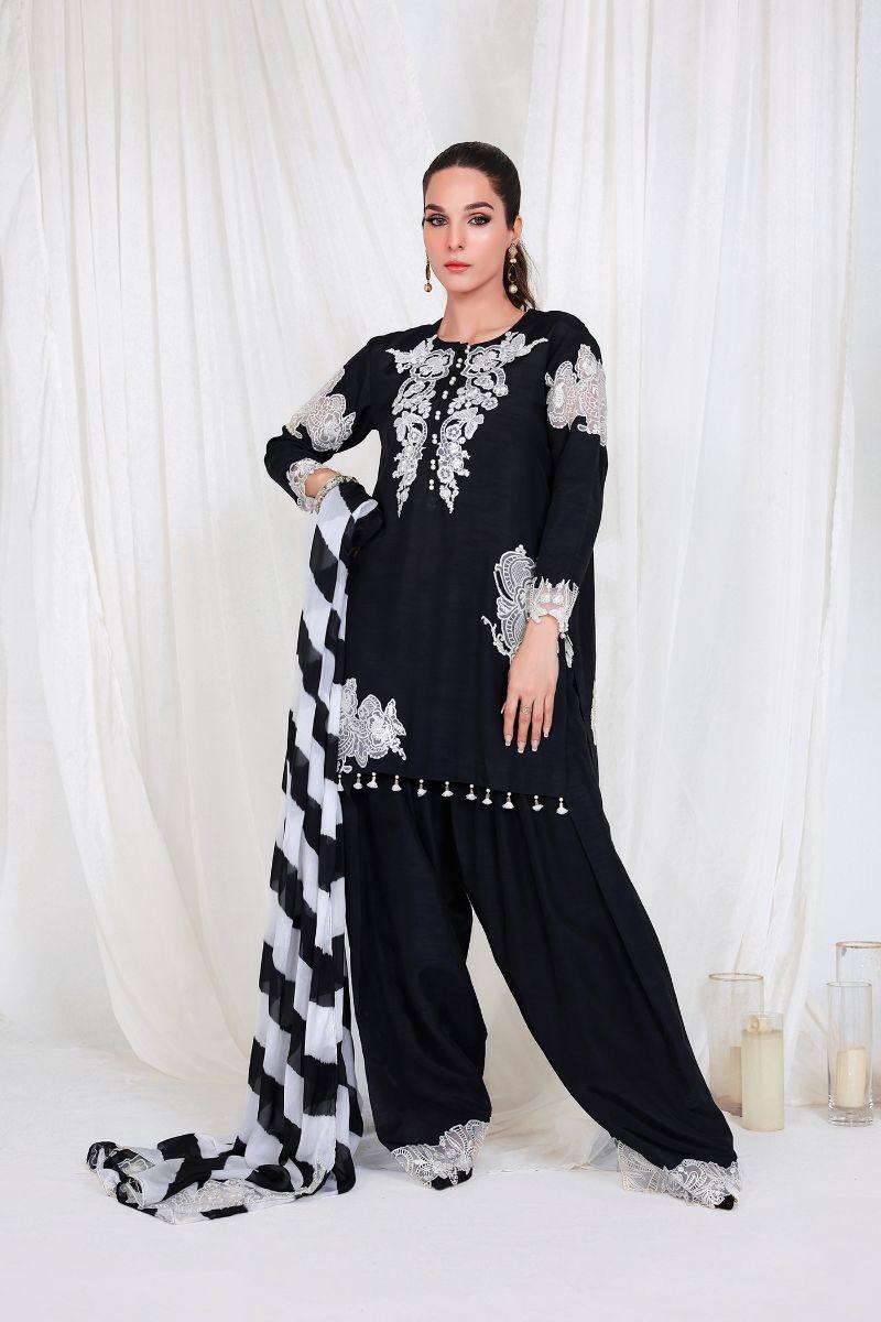 Reema Ahsan - HOORIYA - Korean raw silk - Black - 3 Piece