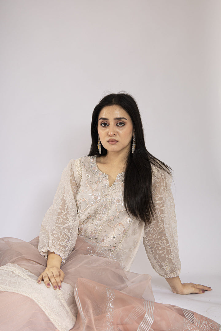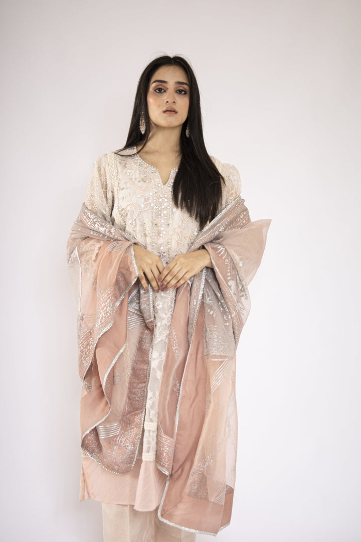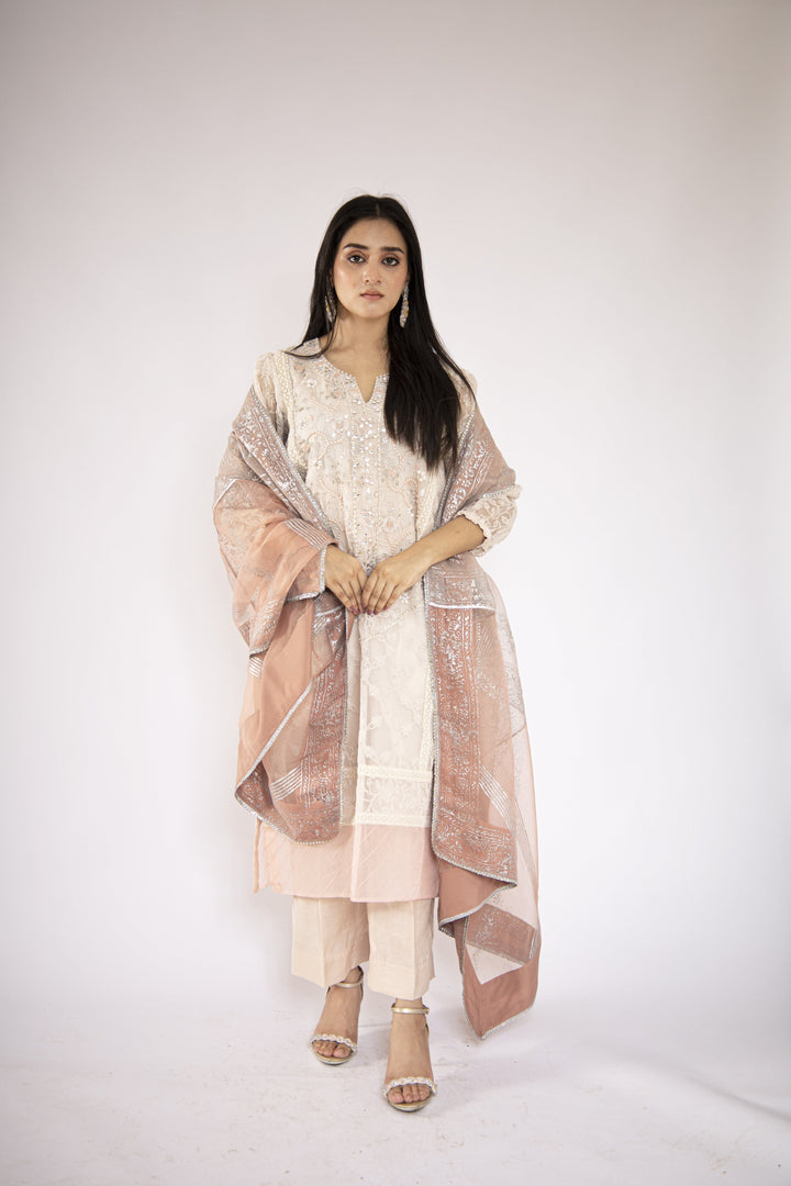 Sadia Aamir - Elaya - Off White Embroidered Organza Silk and Dupatta with Silk Culottes - 3 Piece