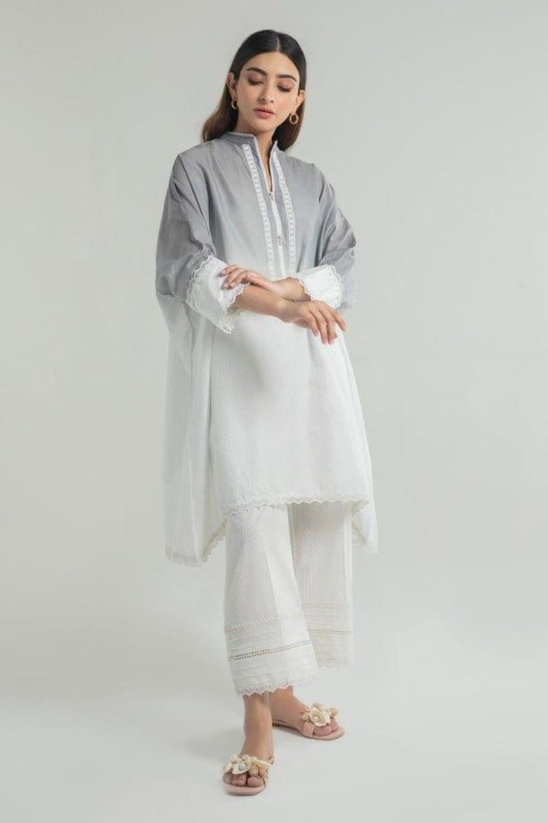 Sana Safinaz - Light Grey And White Kurta - Ss22Bsp179