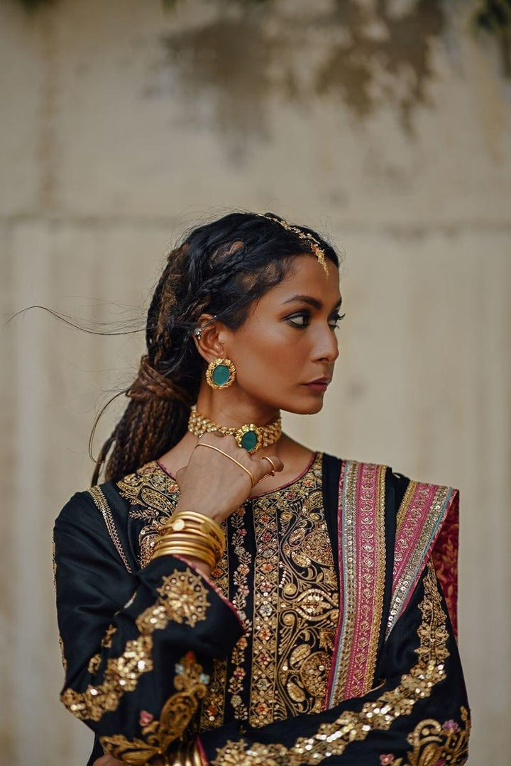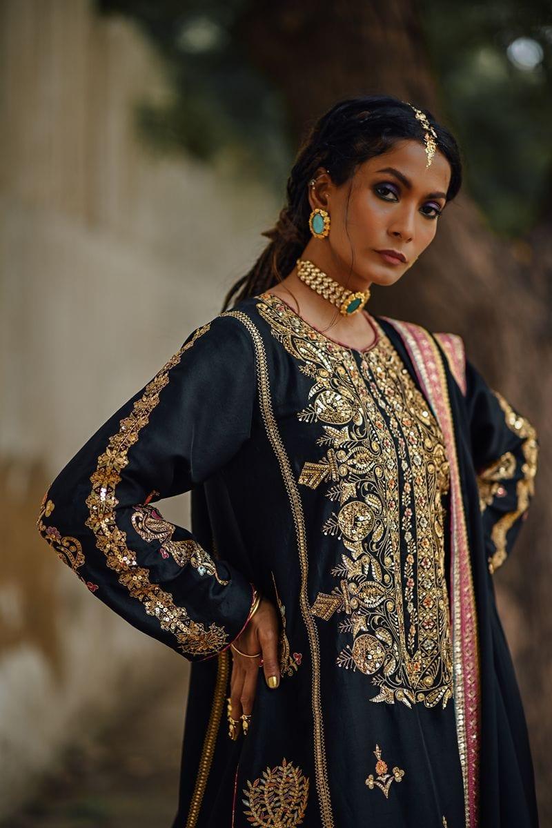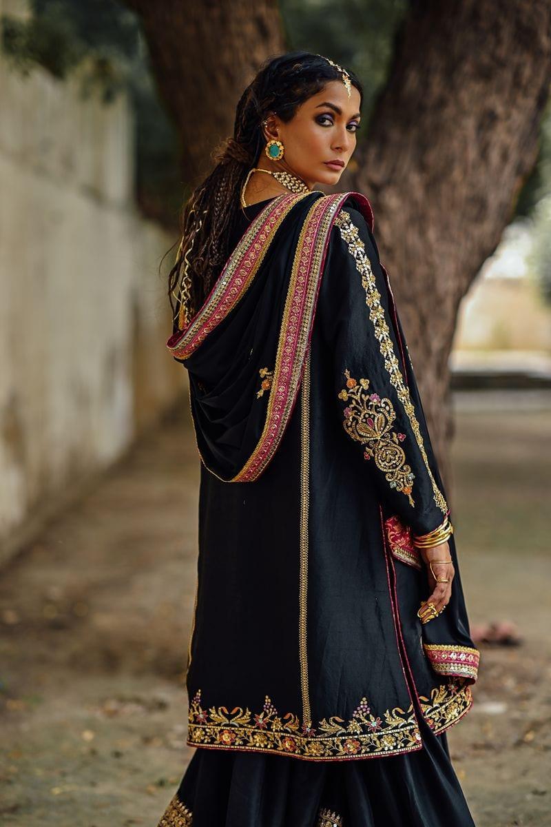 Sanam Chaudhri - Raw Silk Embroidered Shirt and Chatta Patti Gharara