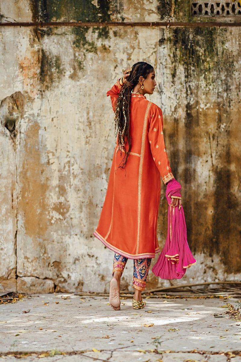 Sanam Chaudhri - Raw Silk Embroidered Shirt and Shalwar with Dupatta - Studio by TCS